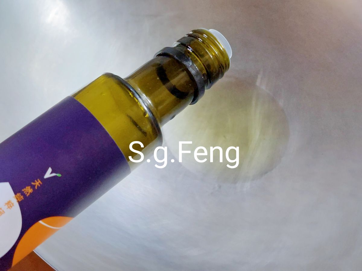 3.起鍋,開中小火,倒入榛果油。