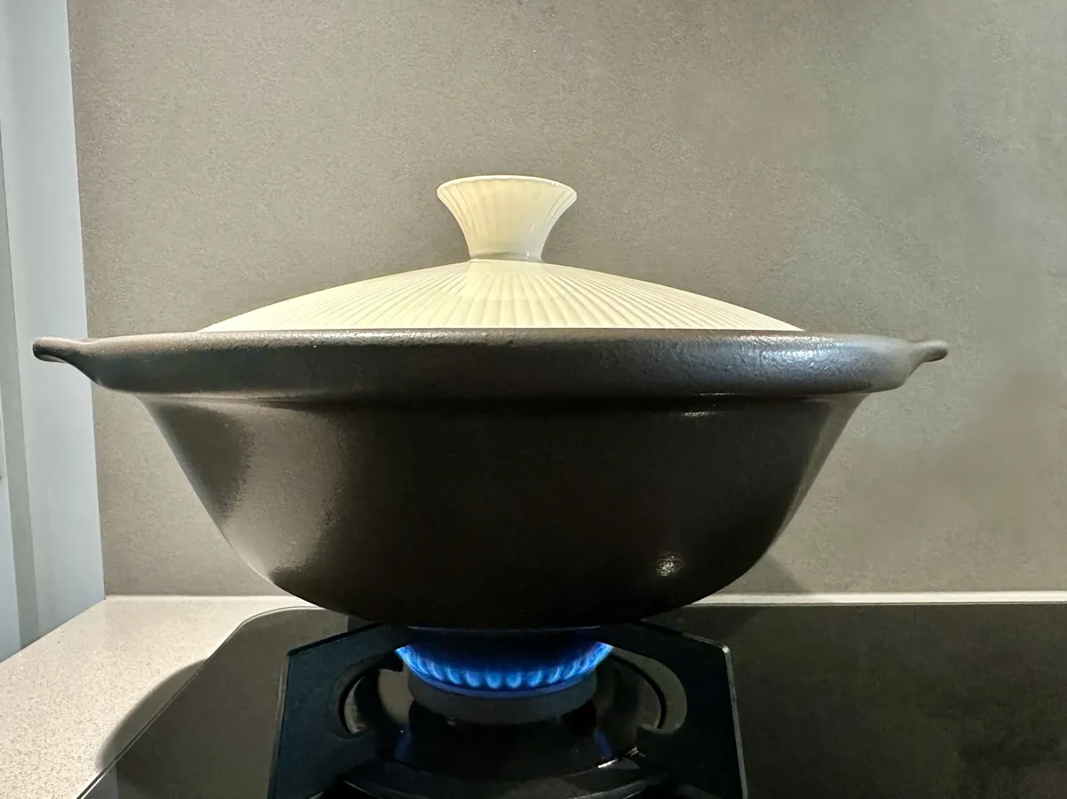 ●蓋鍋小火,再次手機設定計時器燉50分鐘。 ※陶鍋適合小火燉煮,保溫保水性佳,加的水量不會消失太多。